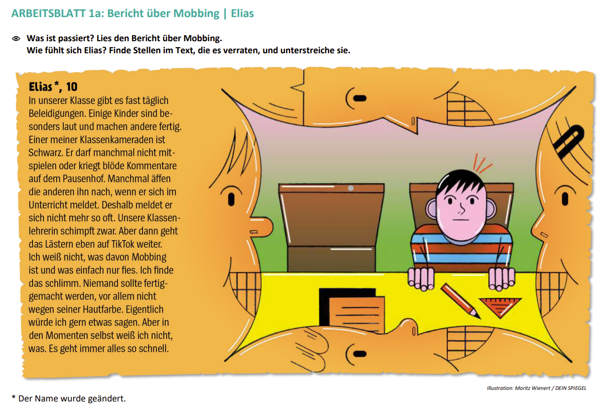 Diese Unterrichtseinheit basiert auf dem Artikel »Was du gegen Mobbing tun kannst«, geschrieben von Deborah Weber, erschienen in »Dein SPIEGEL« 02/2024.